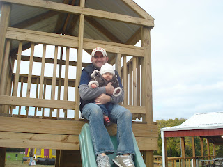 Today we had a great time at the pumpkin patch. It was a little chilly outsisde but we bundled Alivia up in her coat and hat and thought we would try it. We are soo glad we did because Alivia LOVED it and was such a good girl. We can't wait to go back next year when she can ride some of their rides and run around. Alivia got to pick out her first pumpkin, pet some cool animals, slide down a slide and ride a cow. These were all firsts for Alivia. What a great family day we had! :)